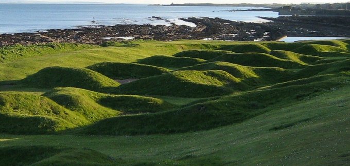 Golf dominates the next few miles as the path heads towards St Andrews. Here and there the manicured grass pushes the path onto the beach, but the tide was low and I wasn’t inconvenienced. My target was Kingsbarns, where I had to wait half an hour for the bus to Crail, so I called at the pub for a couple of pints of Belhaven. The man on my left counselled me on the superb quality of McEwan’s 70/- ale. He then said it was just like Watney’s Draught Red Barrel, which was the only English beer he’d ever been able to stomach. Hmmmm….