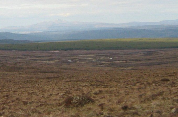 I’d chosen the route from that fine book “Scottish Hill Tracks” which is published by the Scottish Rights of Way and Access Society. I’m pretty sure I was on or close to the specified way, but I never saw evidence that others had walked before me. Visibility was good: behind, the Cairngorms glistened in the late sun, whilst ahead the convex slope of the featureless moor forced me to depend on the compass. The walking was slow and tiring, and I wished I had the speed and agility of the deer that bounded away when I came too close.
