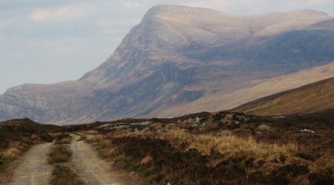 The bus dropped me at West Merkland, and I set off on a broad track between the mountains. The gradient was easy. The world fell silent apart from the sound of trickling water.