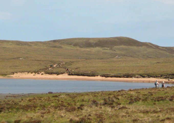 I wrote a couple of postcards and headed towards Oldshoremore and the path for Sandwood Bay. The parking area was busy, and as I sat drinking water and munching nuts and raisins I struck up a conversation with a cyclist. When I found that she came from Carrbridge I told her I’d opted out of the Cairngorms a few days earlier. She said I’d made a good call, because it had been horrible – she likes winter conditions, but they had deep soft snow that took all the pleasure out of walking.