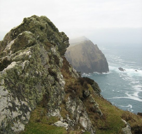 Here Europe makes a doomed stand against the ceaseless attacks of the Atlantic, and air moistened and warmed by the Gulf Stream encounters the rising ground of Ireland’s second-highest mountain range. It therefore comes as no surprise that mist forms, dissipates and re-forms around the headlands in a seemingly random way, and that Brandon Mountain wears its grey cap more often than not.