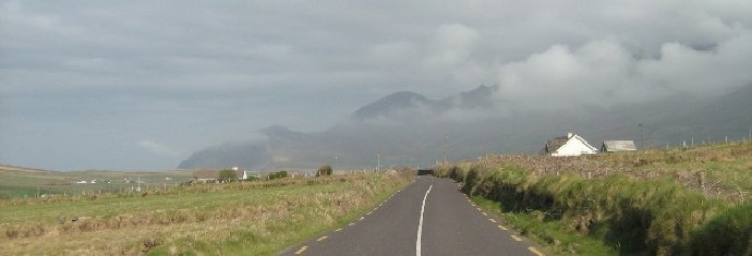 Leaving Feohanagh. Route over Brandon Mountain uses the highest