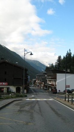At the scuffed and levelled skiing shelf of La Flégère we buy return tickets and ride to La Praz for a pleasant riverside walk into Chamonix. The hotel is well located and the welcome friendly and helpful. After a shower we hit the town. A newspaper headline tells of a hotel fire at Les Contamines: Hotel le Grizzli has been destroyed. They’ll have to redesign the breakfast bar! We sample a couple of beers before going for dinner, where Martin’s order of ‘fillet steak well done’ elicits the response ‘catastrophe’ from the waiter. At least he gets what he wants. We round the evening off with the French version of Irish coffee – also ‘catastrophe’.